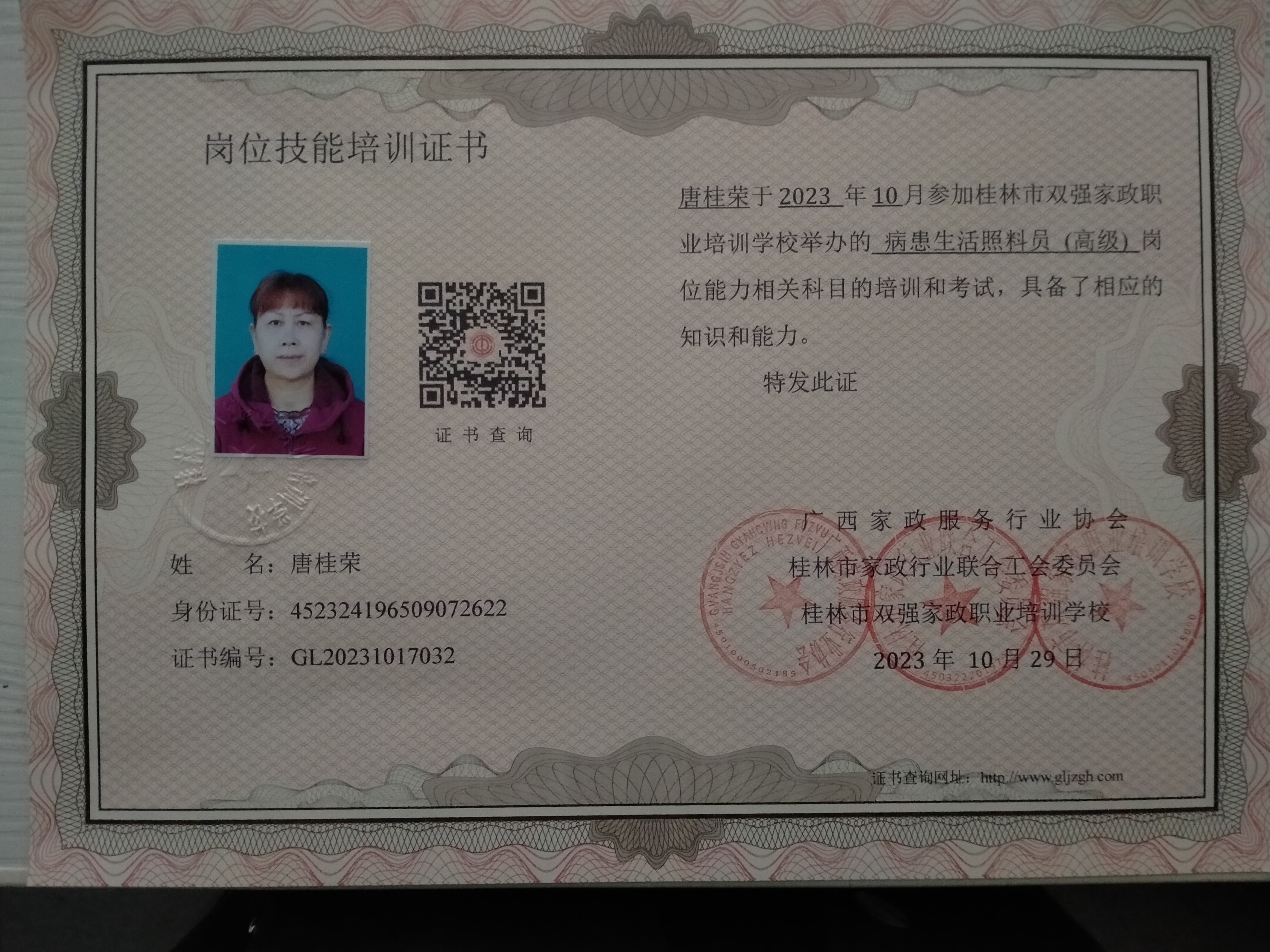 一、高级病患生活照料员证书