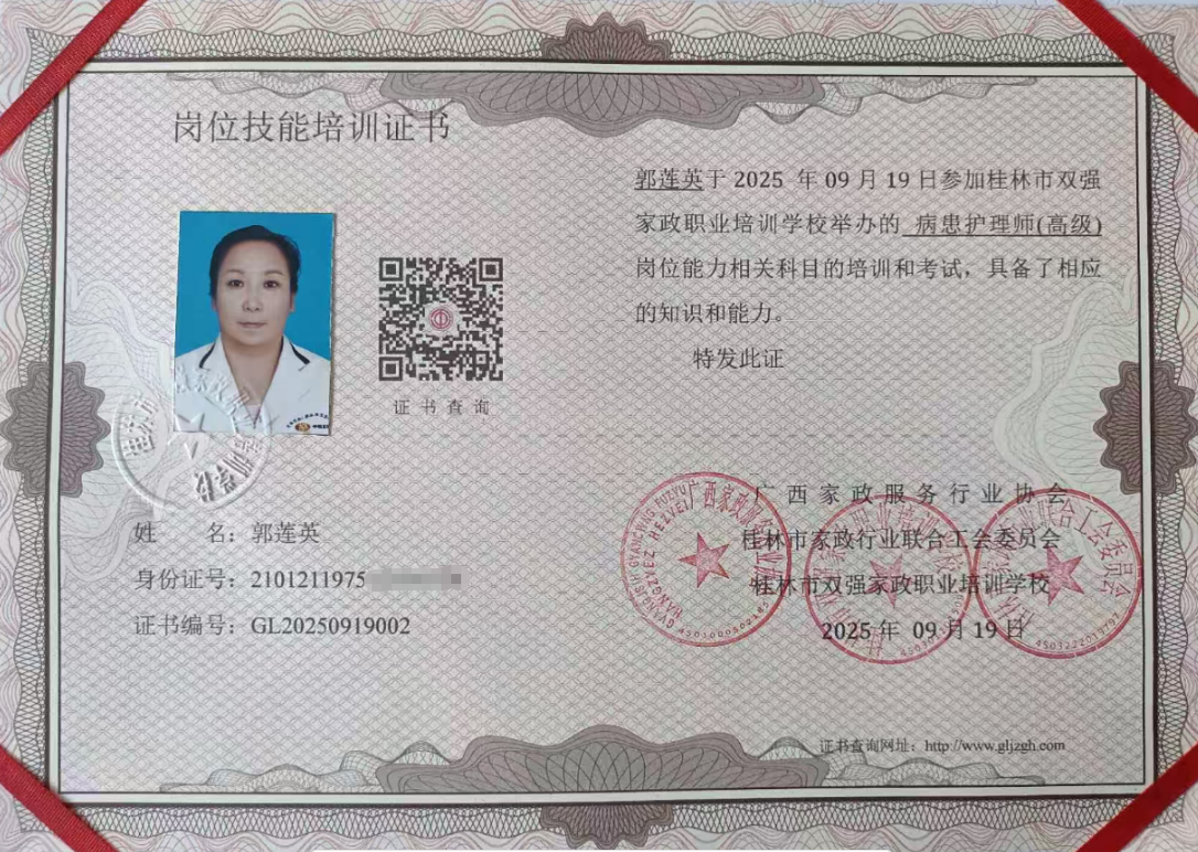 病患护理师证书
