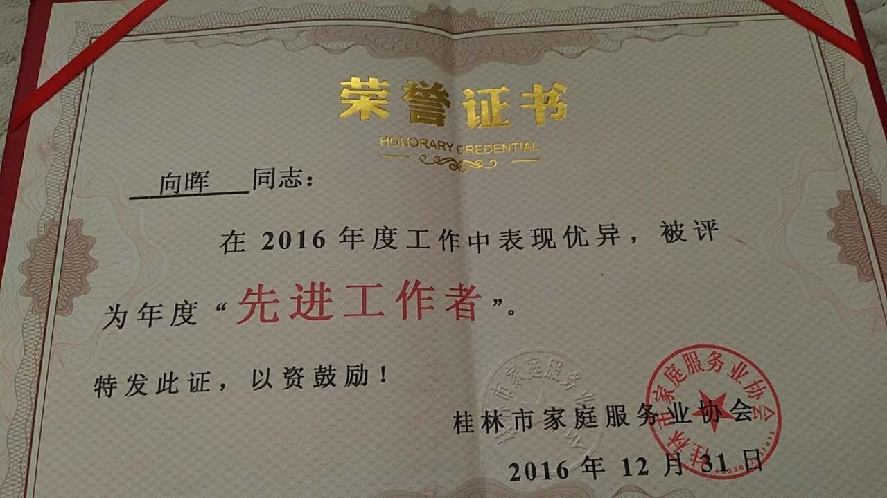 向晖同志:在2016年度工作中表现优异,被评为年度“